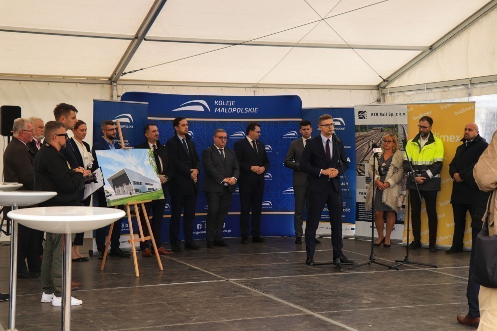 3 września 2021 r. Wojewoda Małopolski wydał decyzję zatwierdzającą projekt budowlany i udzielającą pozwolenie na budowę i rozbiórkę, a 21 września decyzja o pozwoleniu na budowę stała się ostateczna. Po uzyskaniu wszystkich potrzebnych zgód przystąpiliśmy do budowy. Symboliczne wbicie łopaty odbyło się 1 października 2021, a budowę zaplecza technicznego zainaugurowali marszałek Łukasz Smółka wspólnie z przedstawicielami Wykonawcy Budimex SA i KZN Rail oraz prezesem Kolei Małopolskich Tomaszem Warchołem.